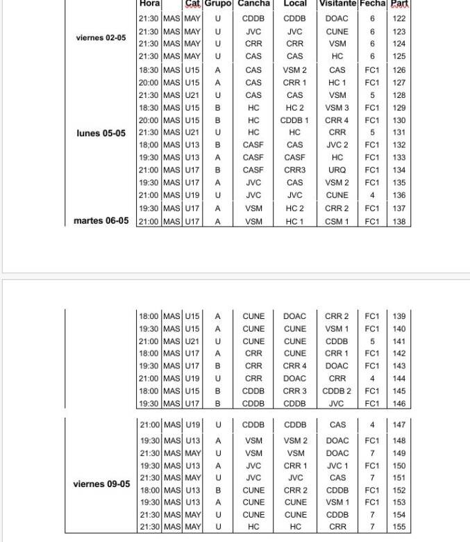 ABR / Masculino: Programación de partidos en todas las categorías